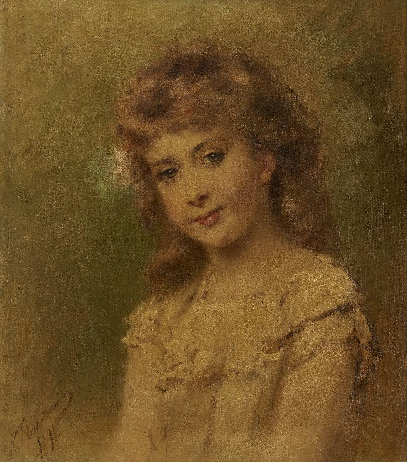Portrait de jeune femme, huile sur toile, signée et datée 1898, 51x45 cm