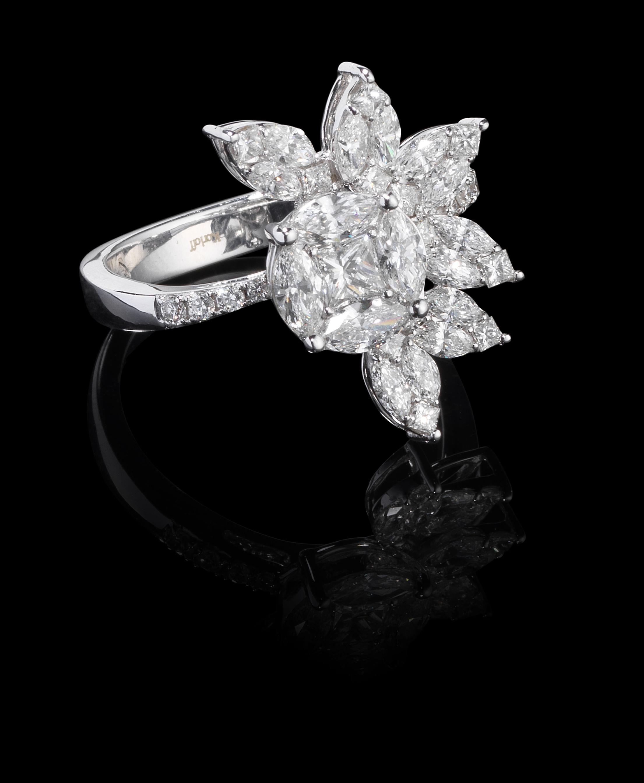 213. Korloff, bague fleur stylisée sertie de diamants taille princesse et marquise