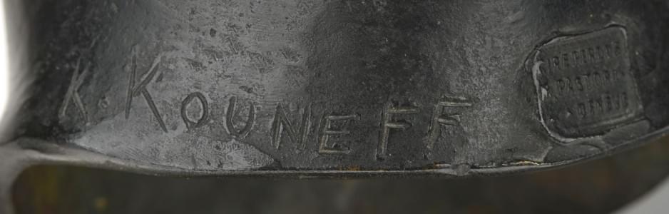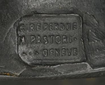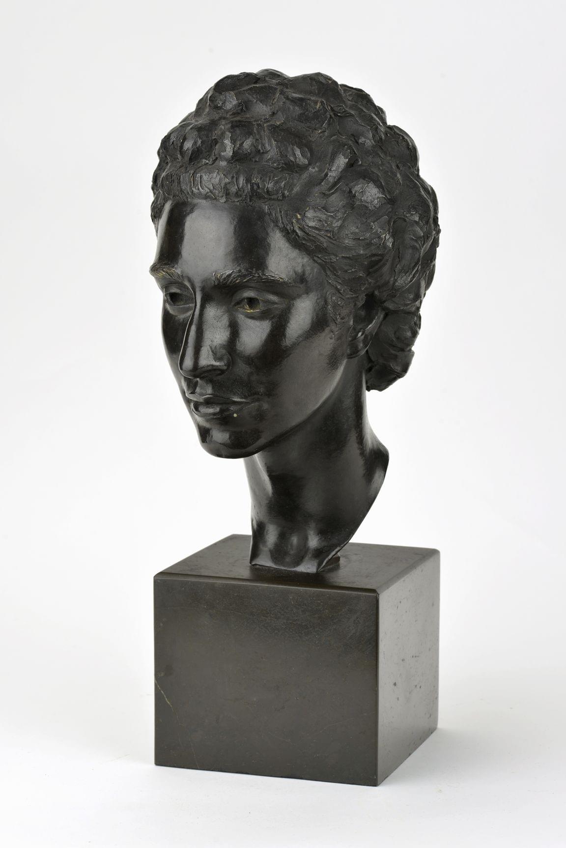 Tête de femme, sculpture en bronze patine noire, signée, cachet de fondeur "cire perdue M. Pastori - Genève", socle en marbre noir, H35