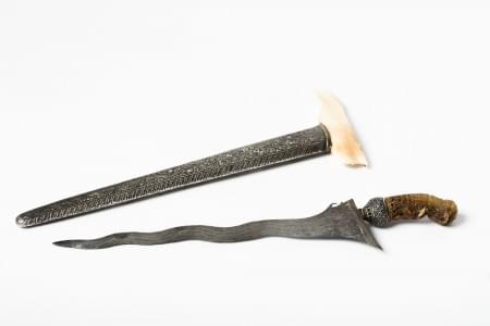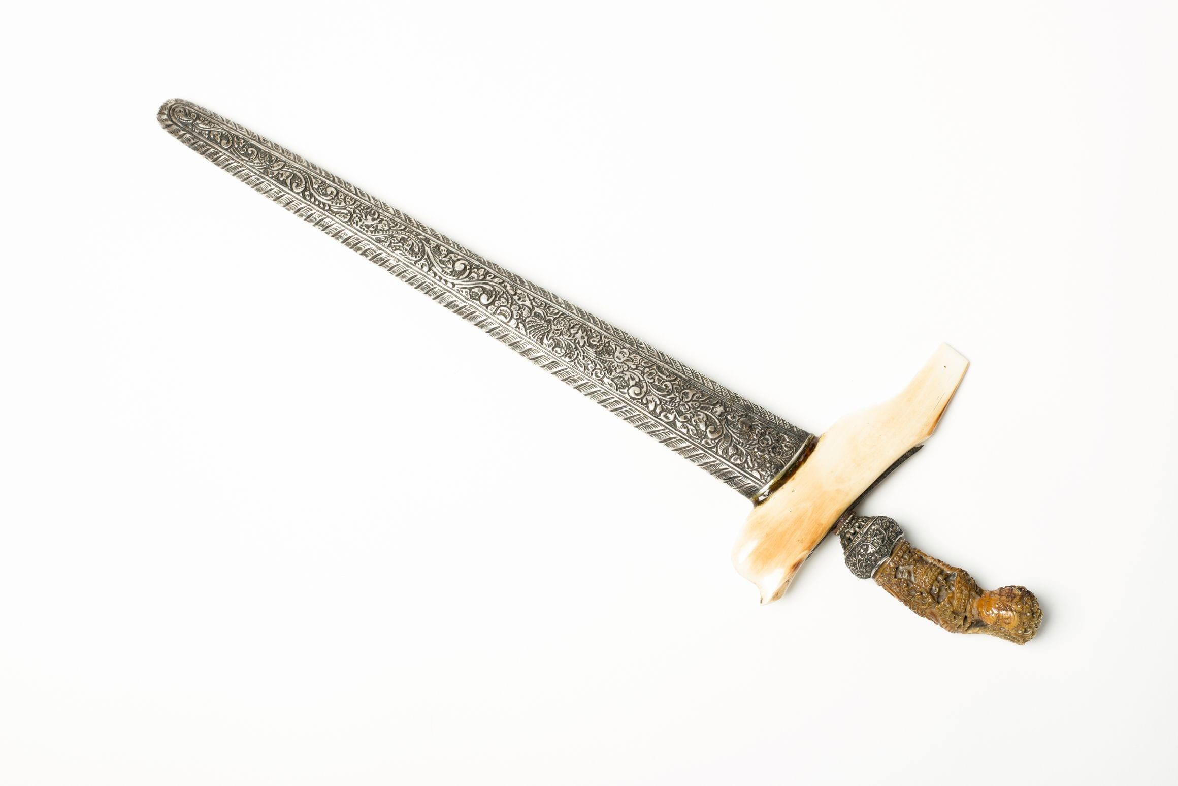 Ivoire et argent, manche à décor de personnages, L 44 cm