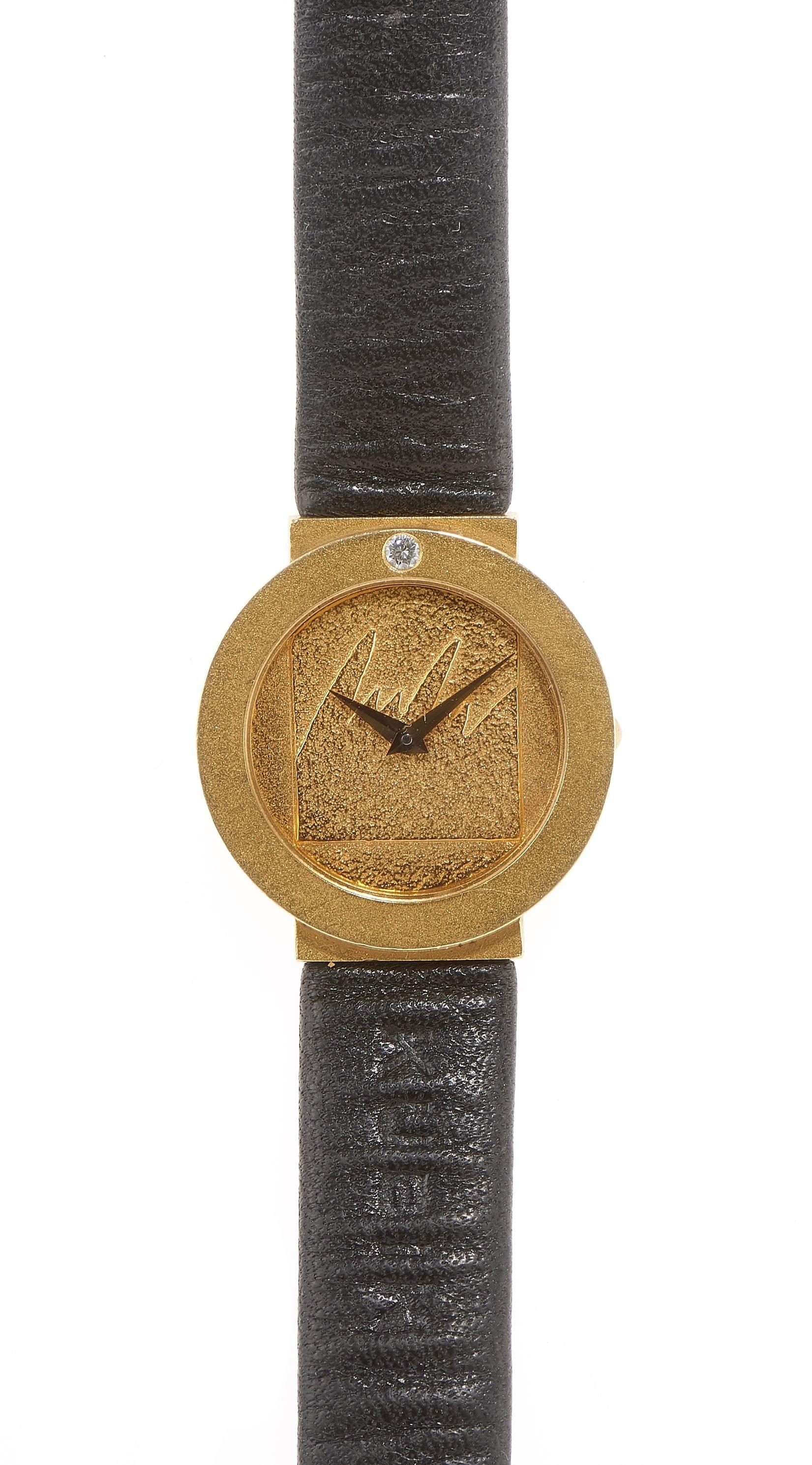 Cadran doré, aiguilles et chiffres arabes noirs, or 750, D 23 mm...