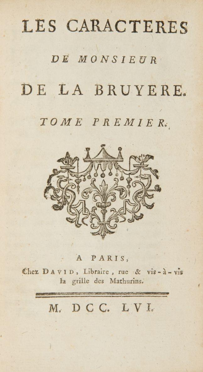 61. LA BRUYERE: Les Caractères. Paris, David, 1756;