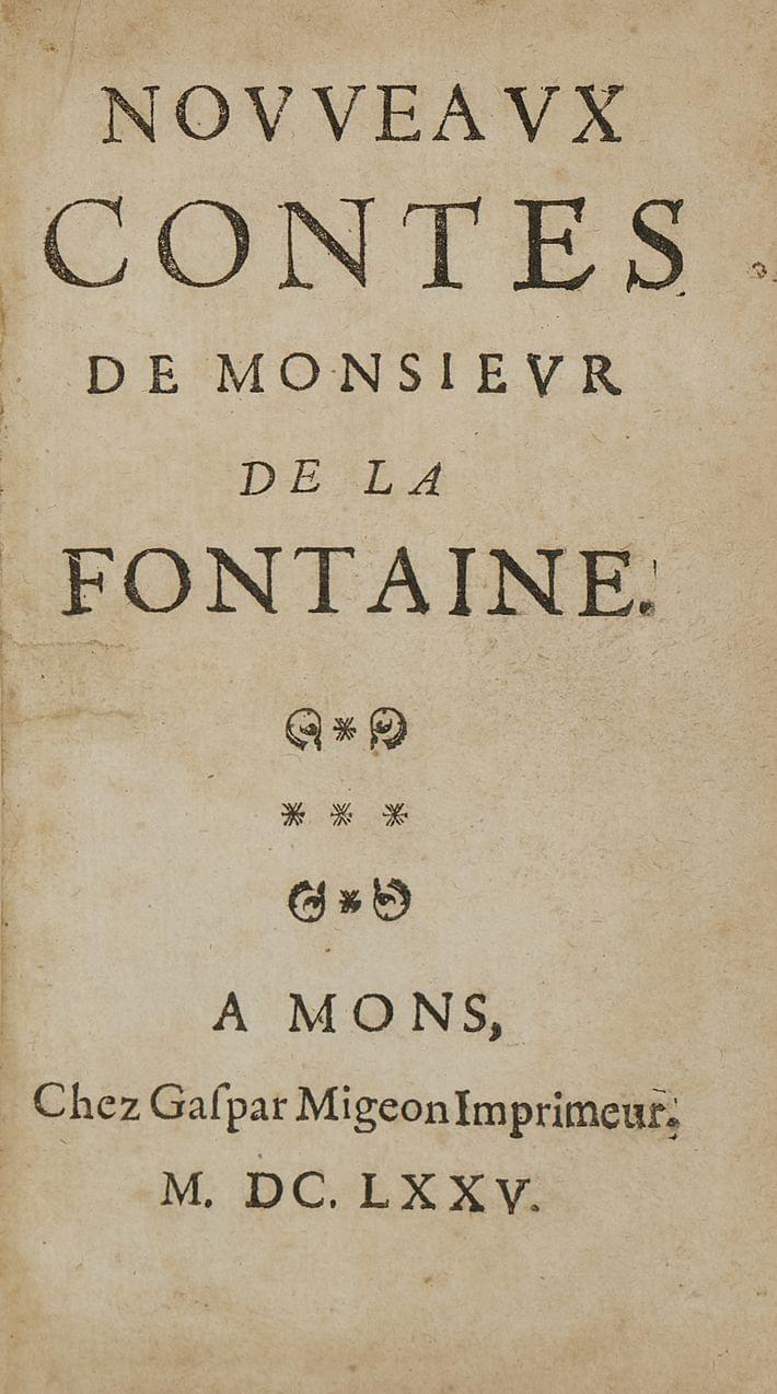 720. LA FONTAINE (Jean de) : Nouveaux Contes de Monsieur de La Fontaine. Mons, chez Gaspar Migeon, 1675