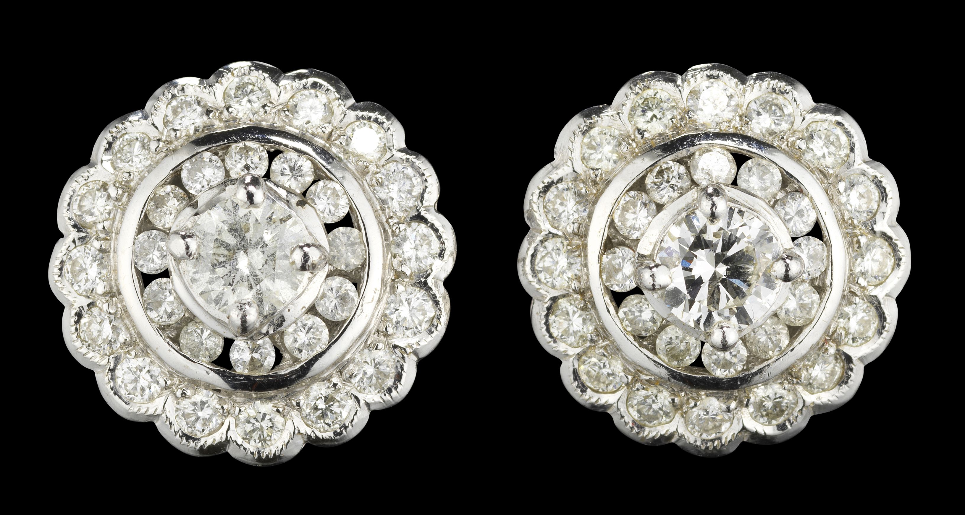 Dans un double entourage de diamants (total env. 1.5 ct), or gri...