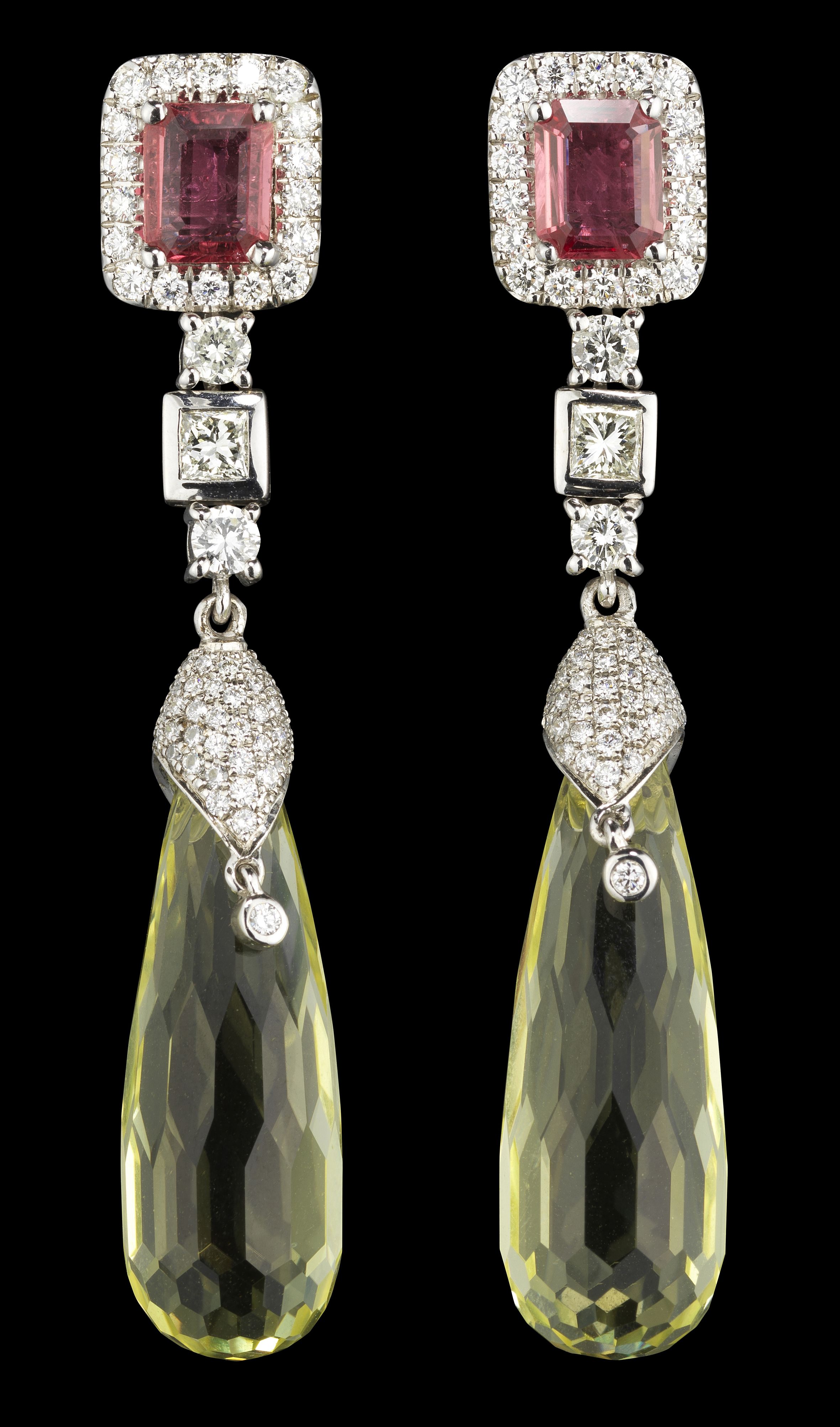 30. *Pendants d'oreilles sertis chacun d'un saphir padparadscha rose...