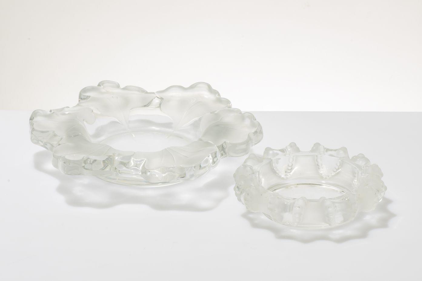 553. Lalique, 2 coupes à décor de feuilles de chêne et d'oursins