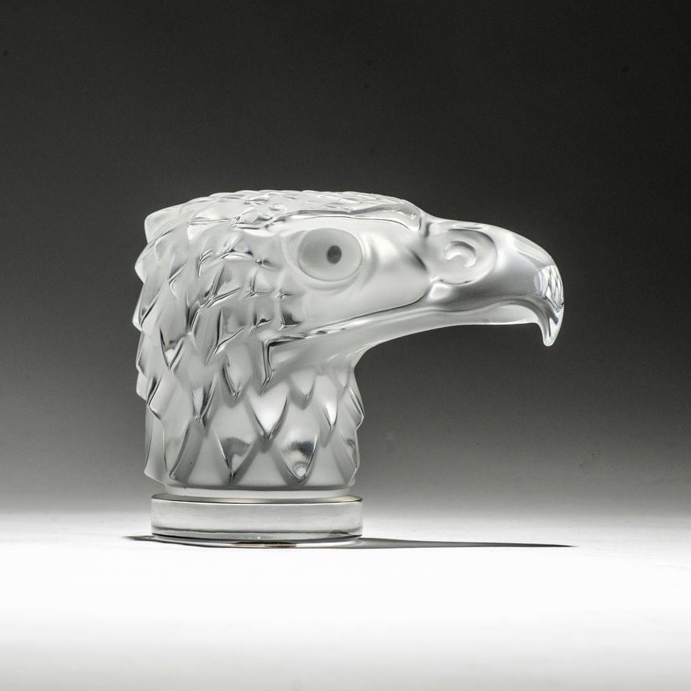 Tête d'aigle mascotte, verre blanc moulé-pressé, H 11 cm