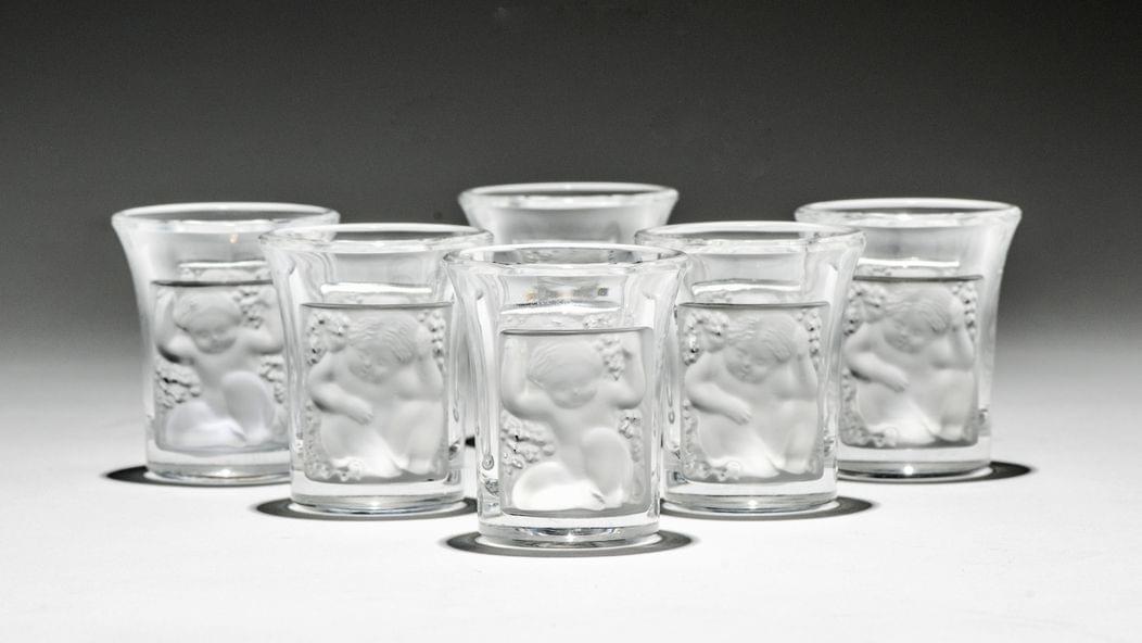 550. Lalique, six gobelets à liqueurs à décor de putti