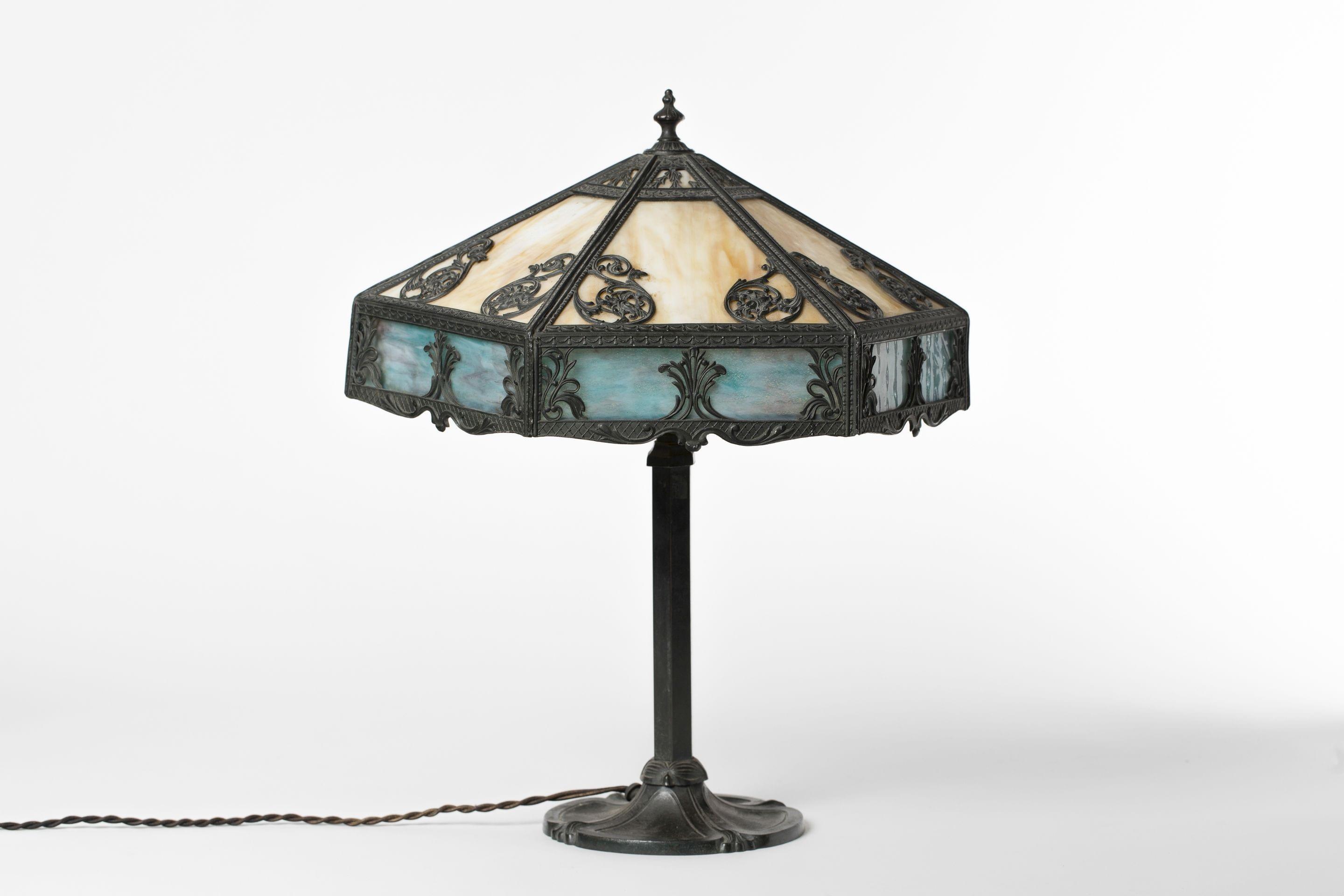 Verre assemblé façon vitrail et métal, 53x19x19 cm
