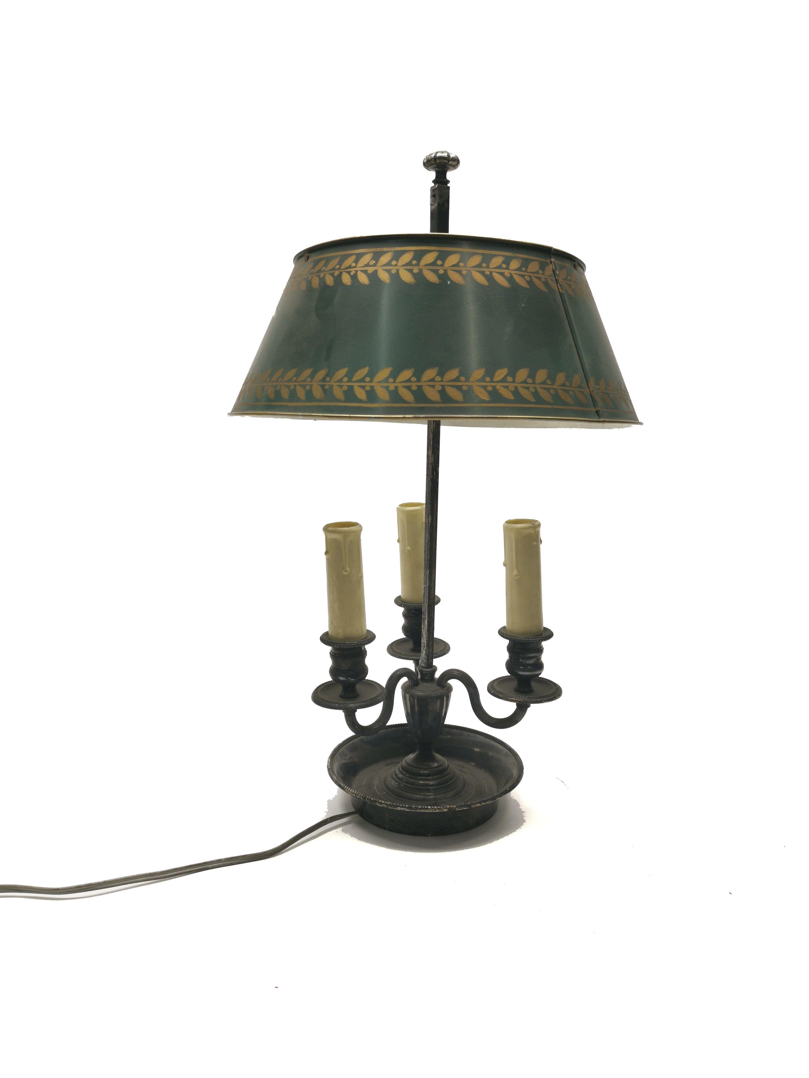 Bronze argenté avec abat-jour tôle verte, H 49 cm