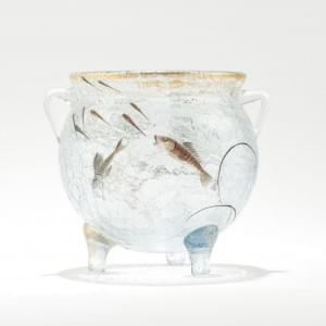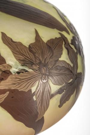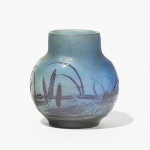 Verre multicouche dégagé à l'acide à décor de nénuphars bleu mar...