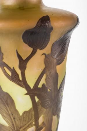 Verre multicouche dégagé à l'acide à décor de pensées mauves sur...