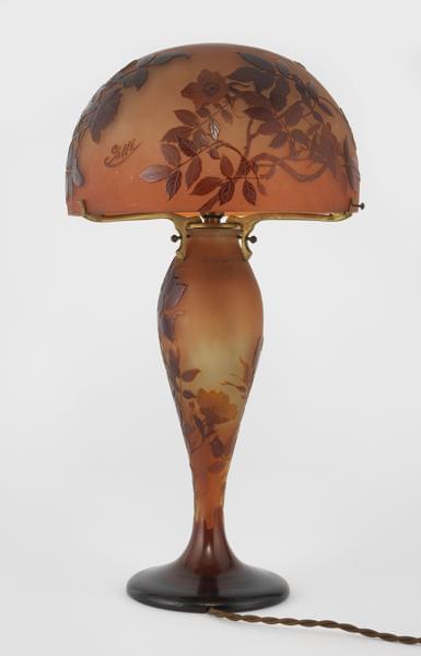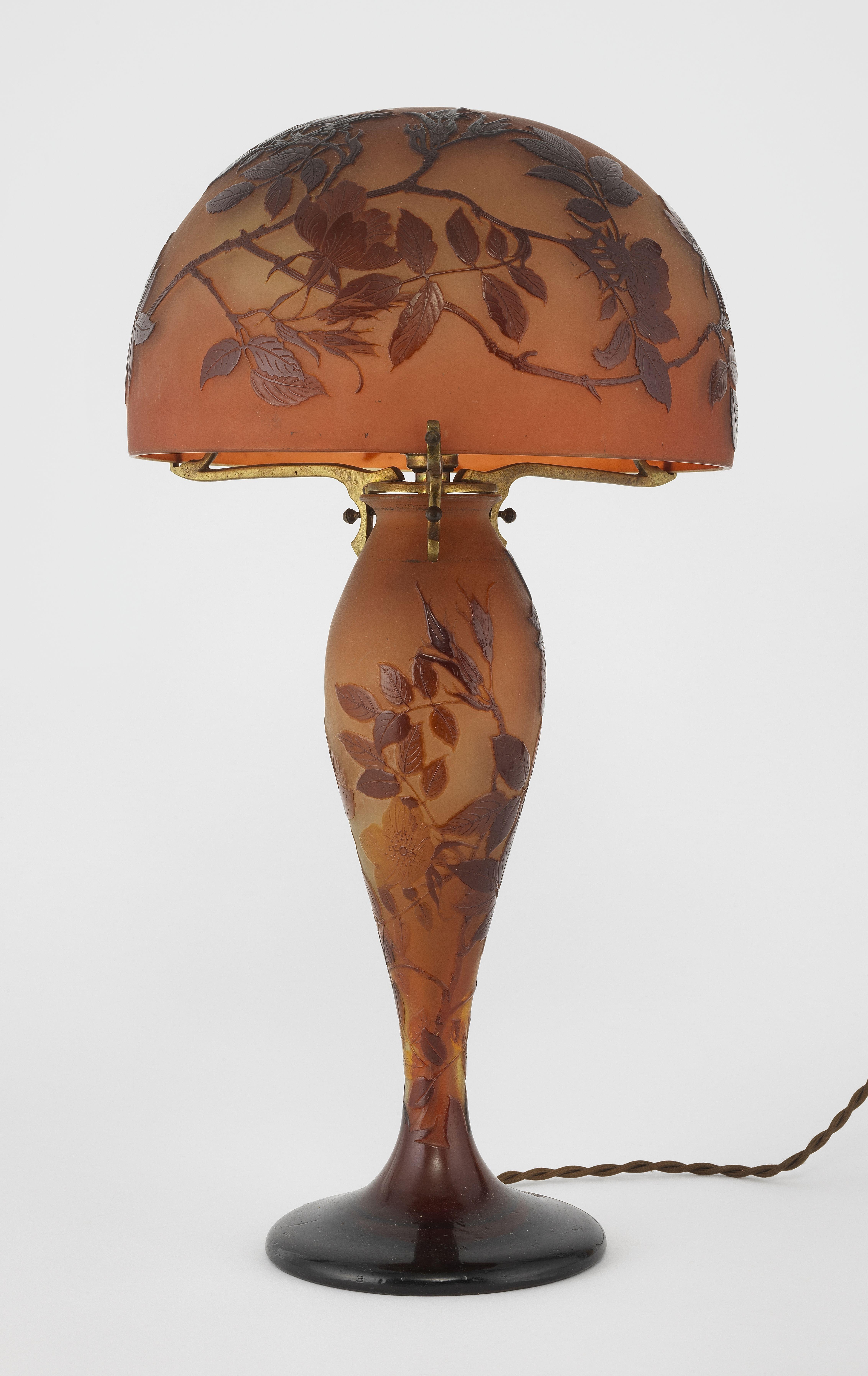 Verre multicouche dégagé à l'acide à décor de roses brunes sur fond rose, H 50 cm