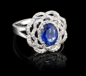 215. *Bague ajourée sertie d'un saphir Ceylan taille ovale (1,48 ct)...