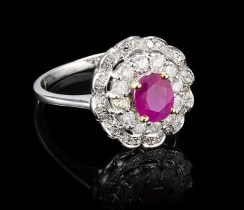 248. *Bague ajourée sertie d'un rubis birman taille ovale (0,95 ct) d...