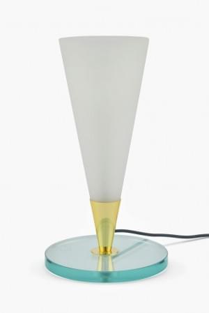 Verre sablé blanc, laiton doré, circa 1970, H 36 cm