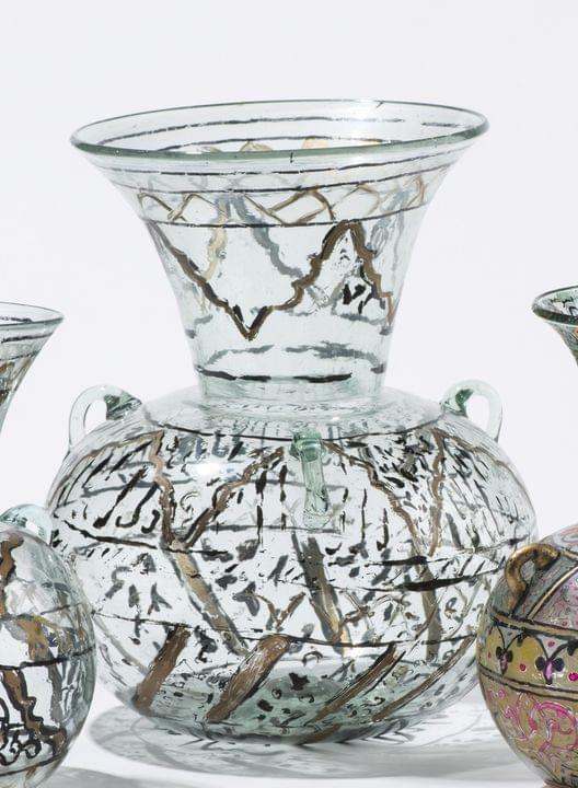 Verre multicouche dégagé à l'acide à décor de chauve-souris viol...
