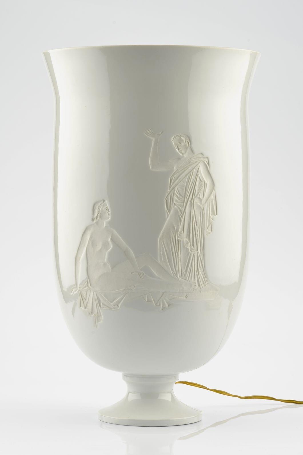 Porcelaine à décor de scène à l'antique en lithophanie, H 30 cm