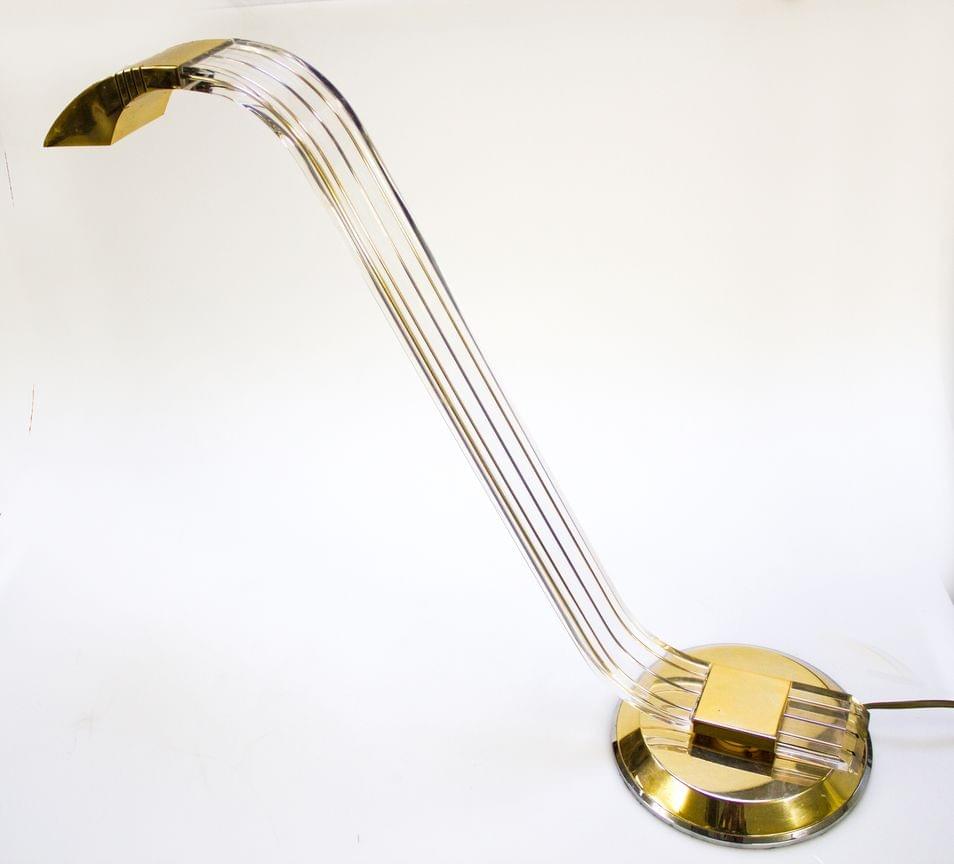 954. Lampe globulaire à décor de voiliers noir et blanc sur fond turq...