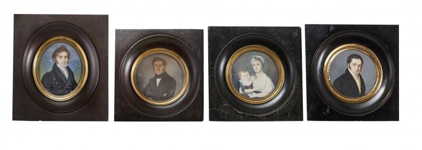 Miniatures à la gouache sur ivoire, XIXe s, l'une signée Finot e...