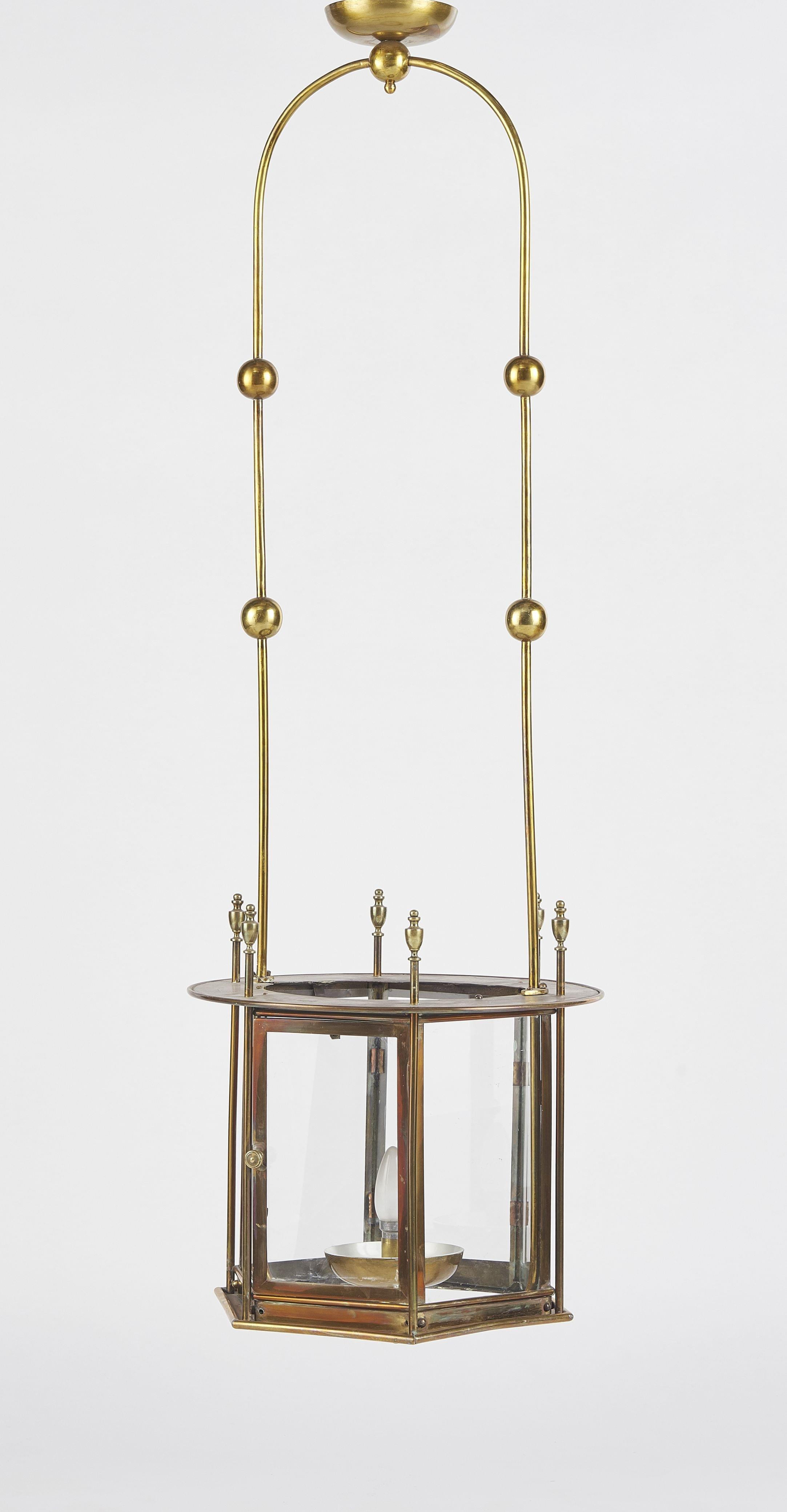 Laiton et verre, H 120 cm