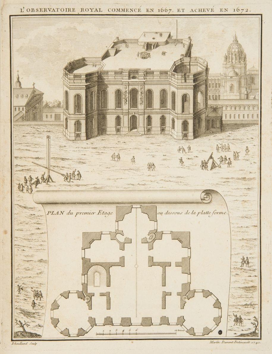 Un vol. in-4°, demi bas., dos à nerfs très orné. Reliure de l'époque. Beau frontispice représentant l'Observatoire de Paris et 6 pl. dépliantes H.T. gravés.