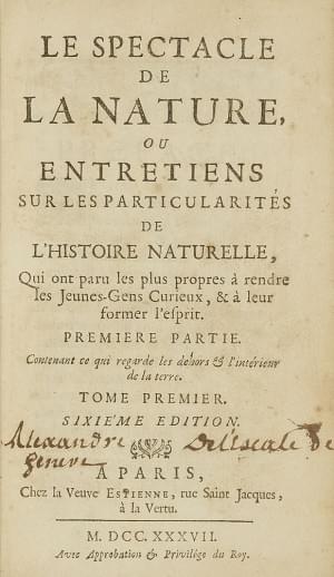 737. Le spectacle de la Nature… Paris, 1737, 6ème ed.