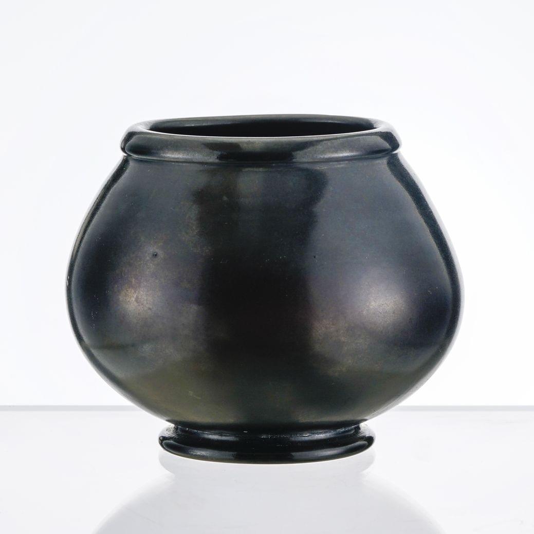 Vase boule, verre vert à patine lustrée noire, circa 1930, H 20...