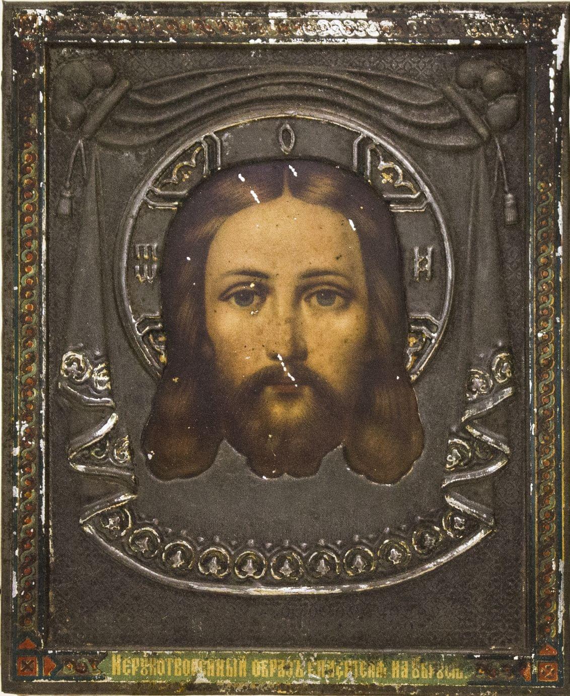 Icône russe, chromolithographie, oklade en métal, fin XIXe s, 22x18 cm