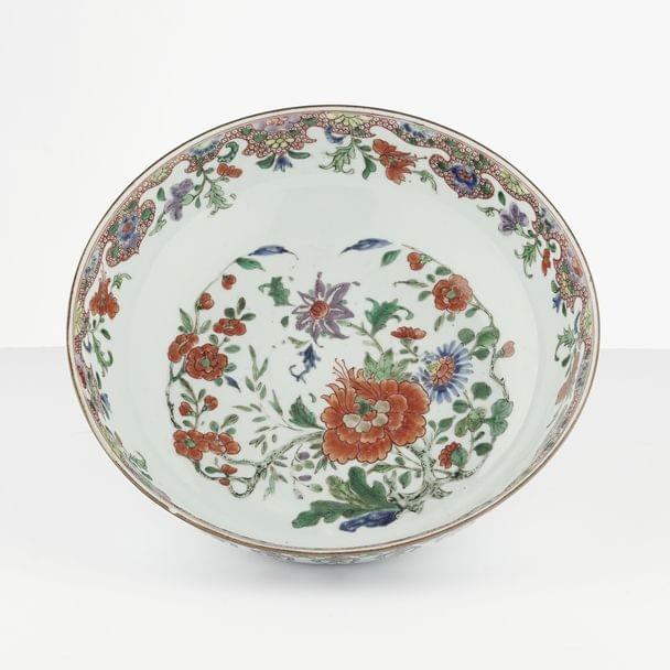 Porcelaine à décor de personnages et fleurs, compagnie des Indes...