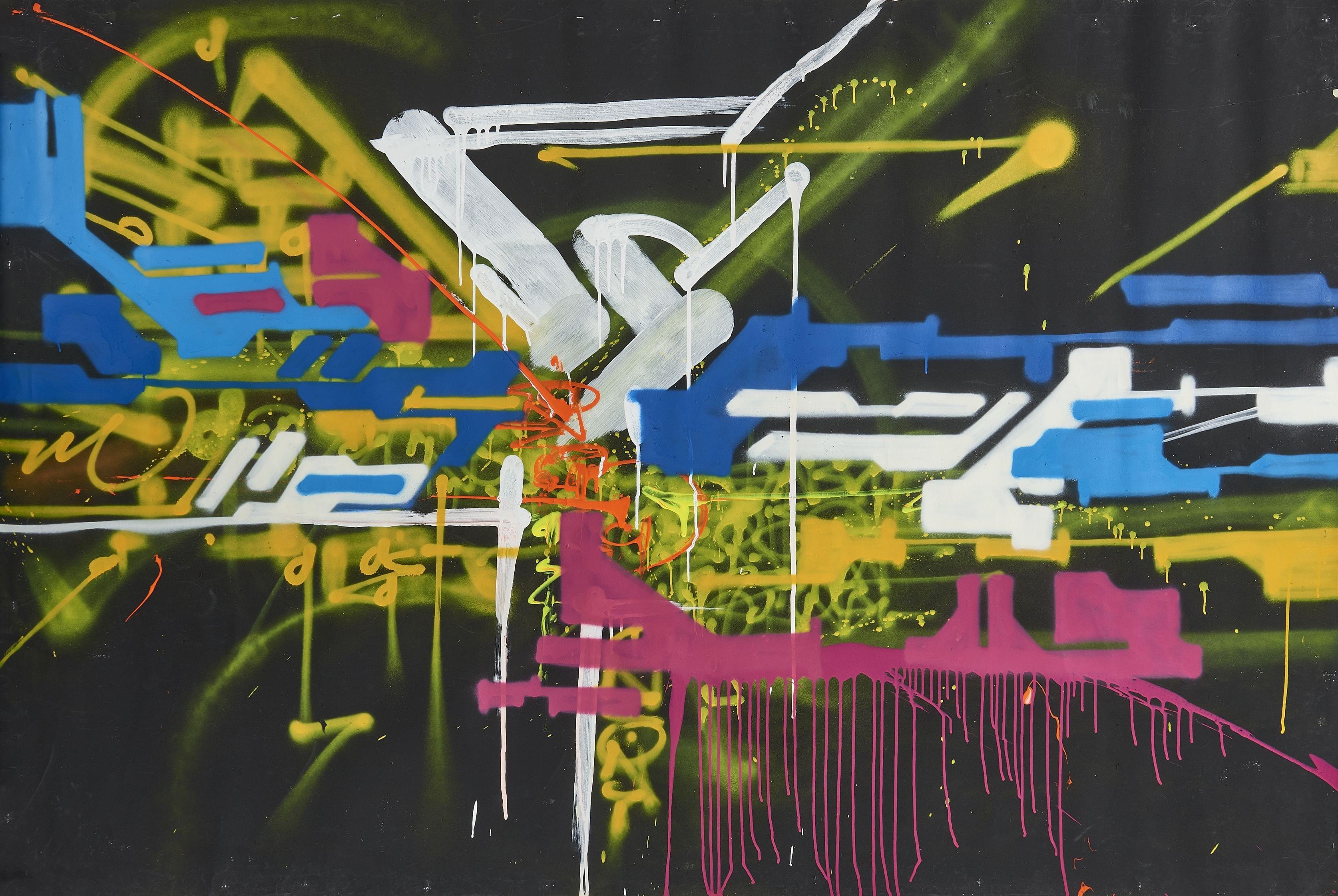 Sans titre, peinture aérosol et acrylique sur toile, 218x150 cm. Performance au Festival de la Cité juillet 2015.
