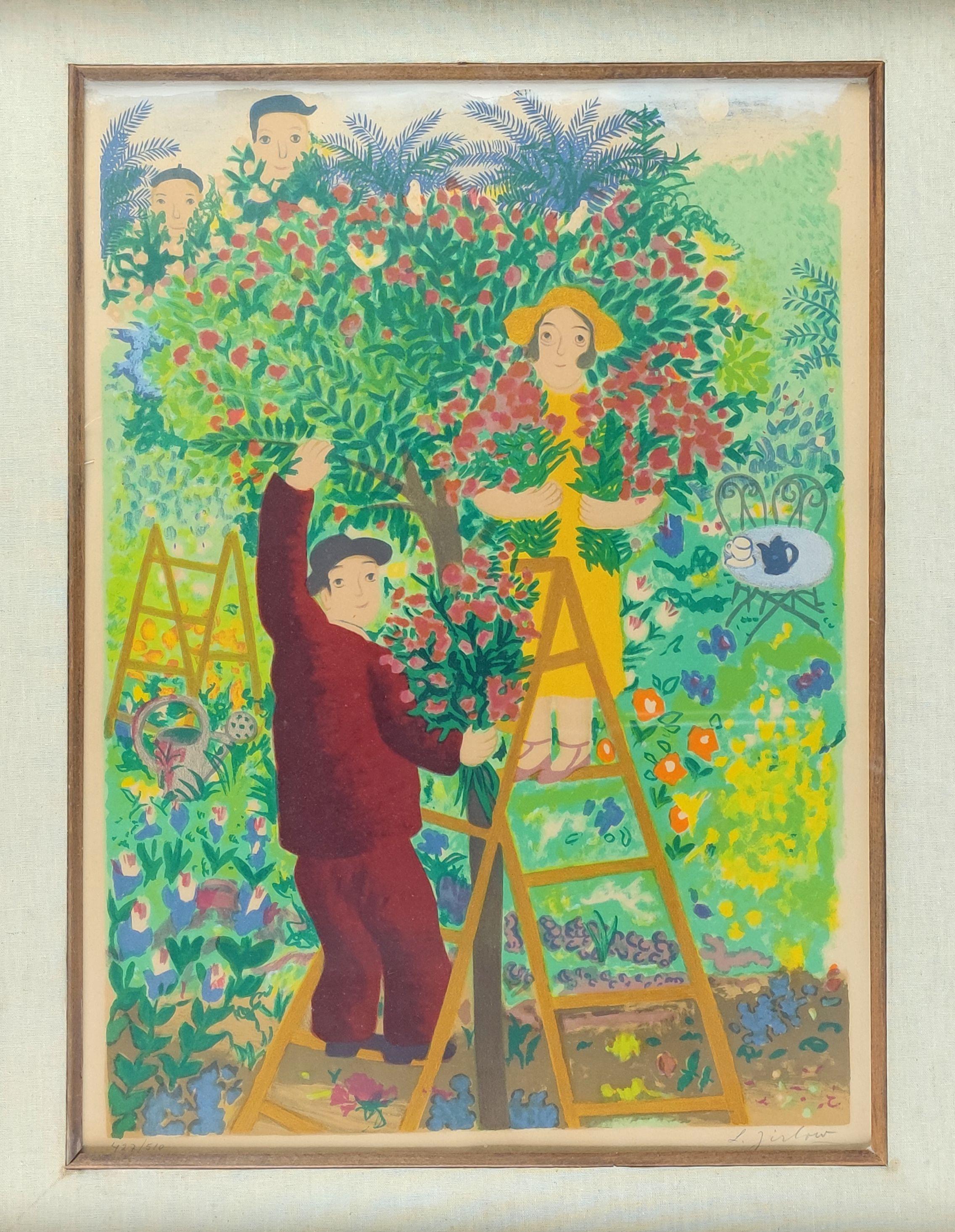 La cueillette des fleurs, lithographie, signée et numérotée 427/510, 56x40 cm