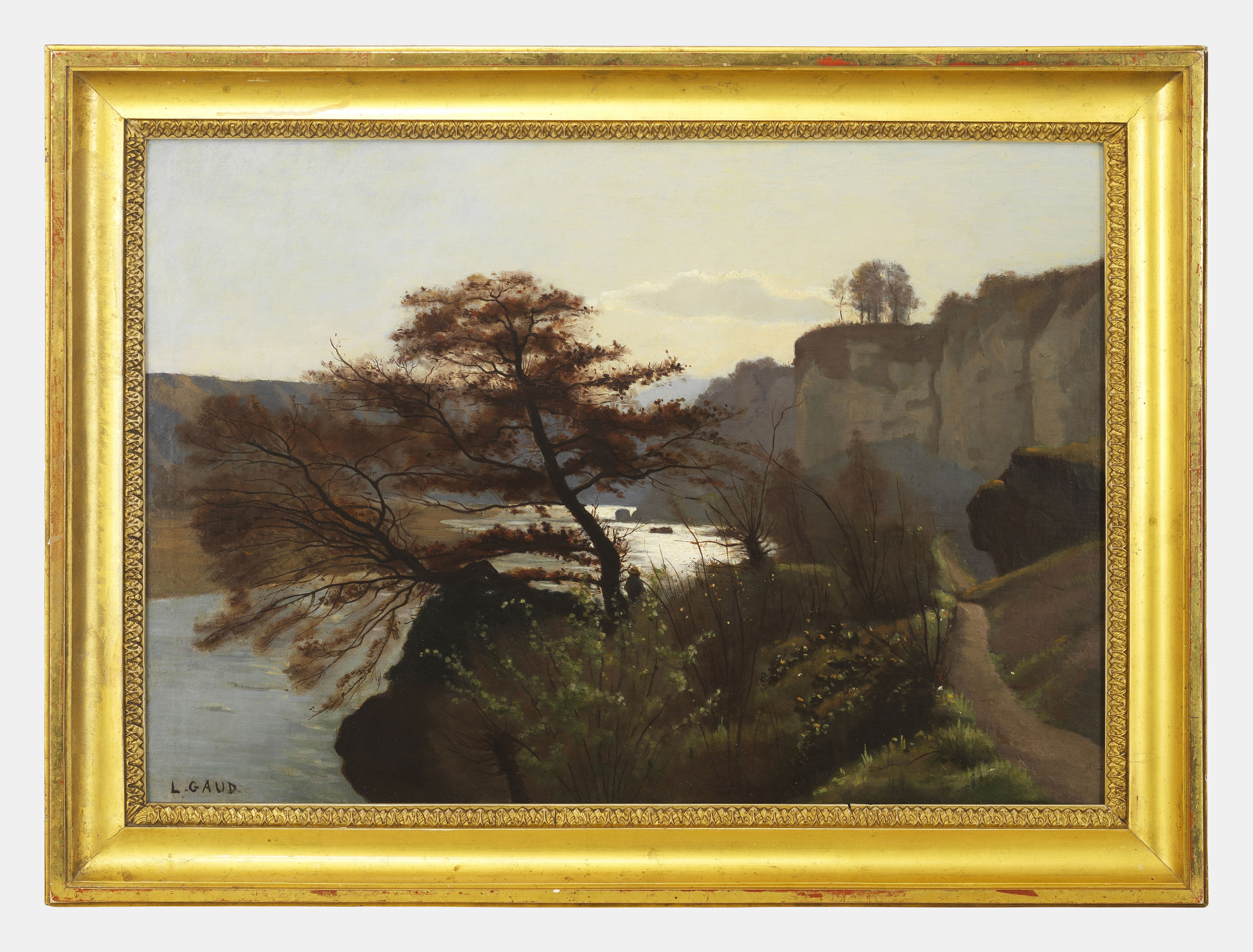 Sentier des falaises du Rhône après Saint Jean à Genève, huile sur toile, signée, 45x62 cm