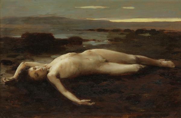 Jeune homme allongé, étude pour Caïn mort, huile sur panneau, 31...