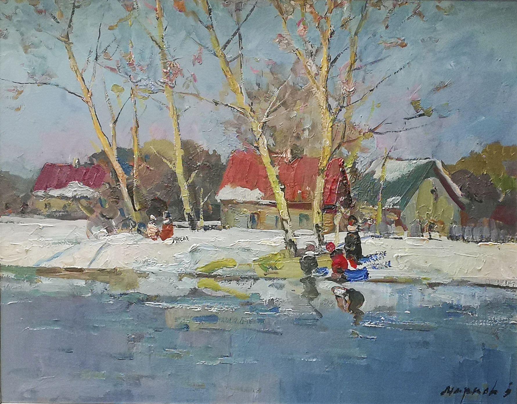 Rives enneigées, huile sur carton, signée, 25x33 cm