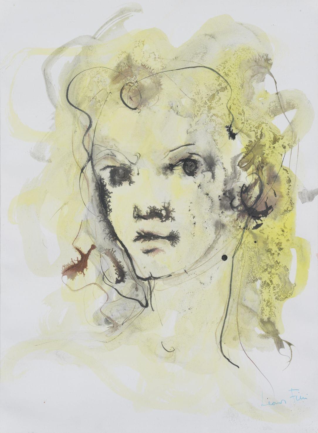 Visage, aquarelle et gouache sur papier, signée, 39x28 cm