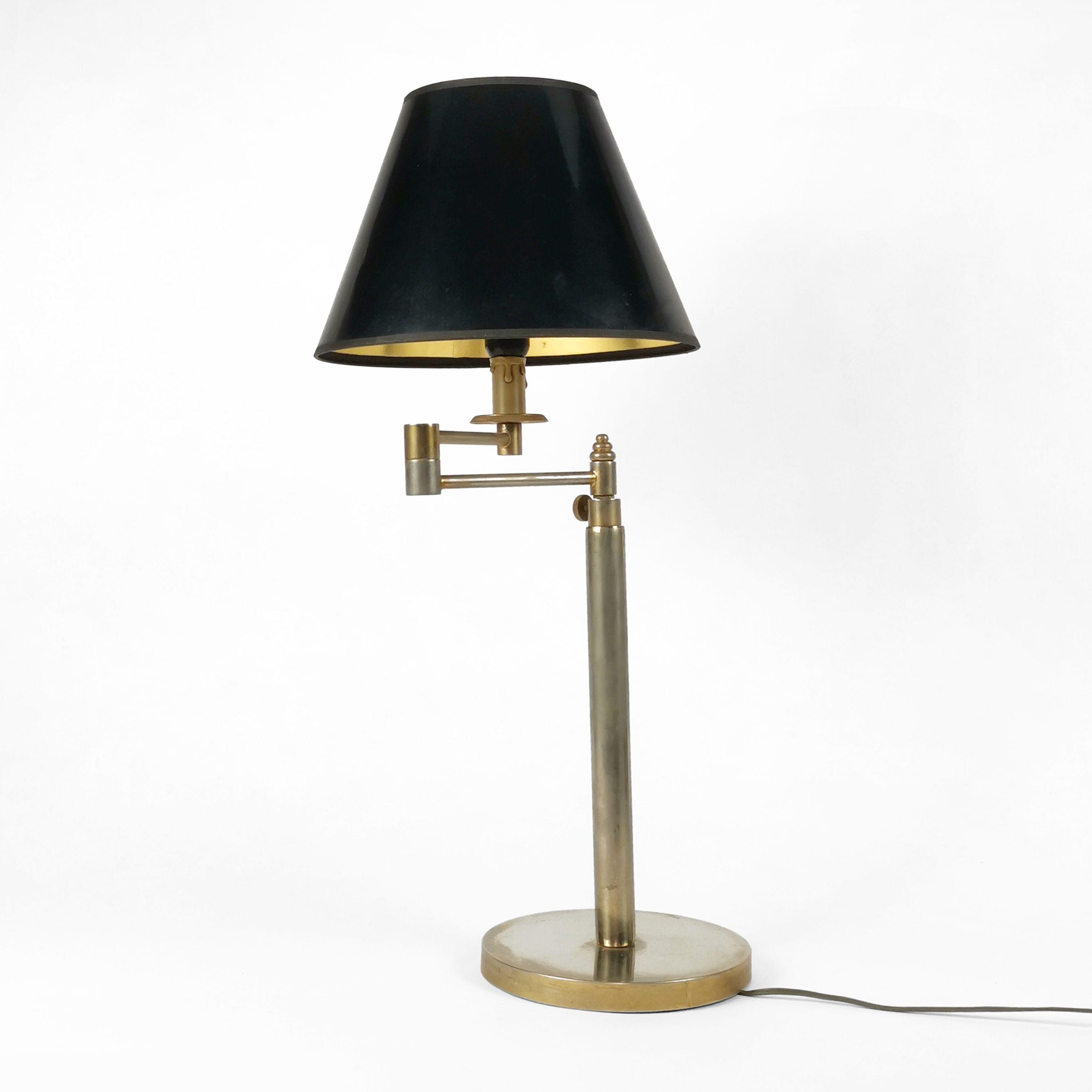 Bois laqué noir et filet de laiton, cuir fauve doré aux petits f...