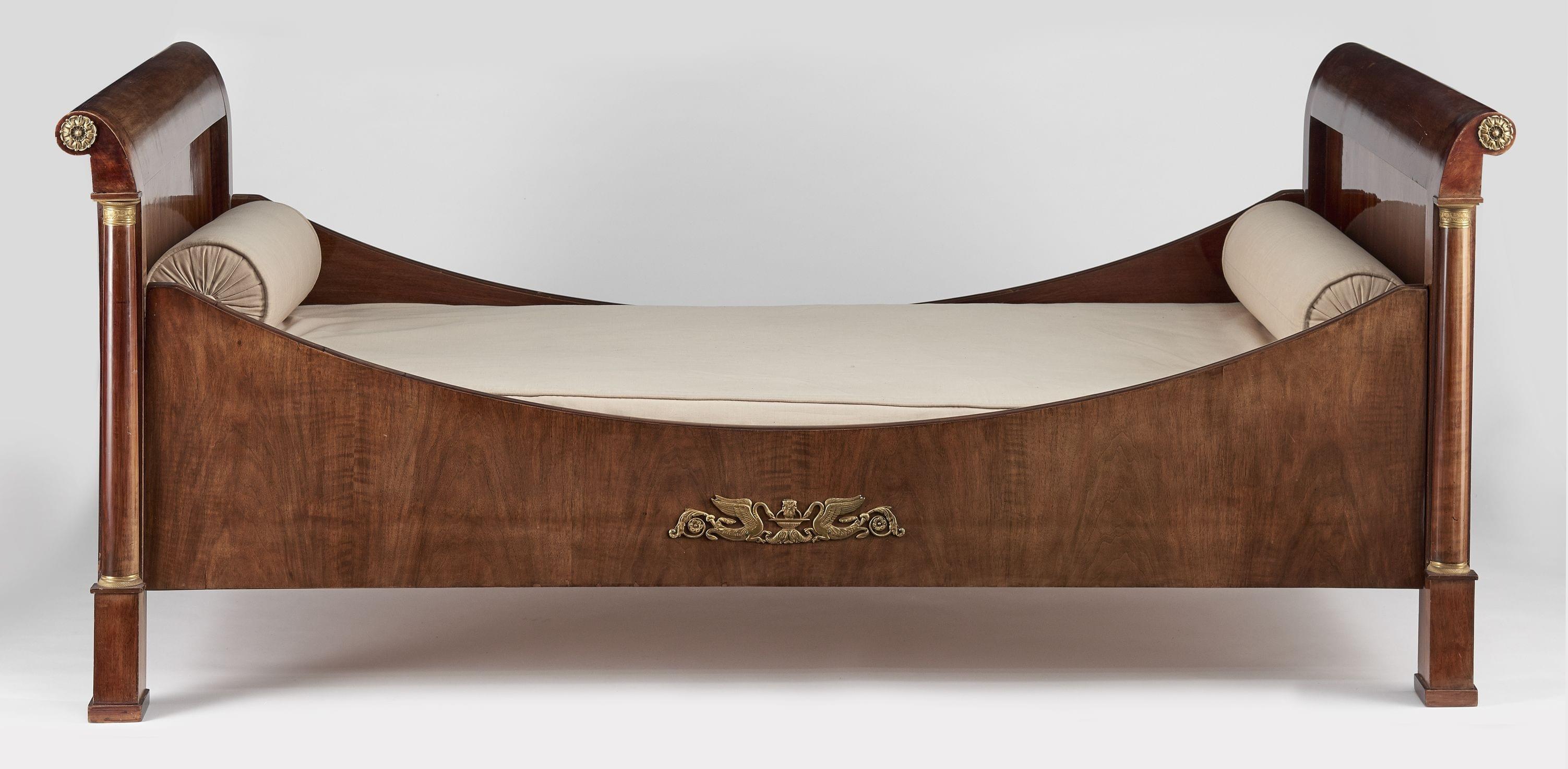 Acajou et bronze doré, L 204 cm, (matelas et sommier modernes, 90x190)
