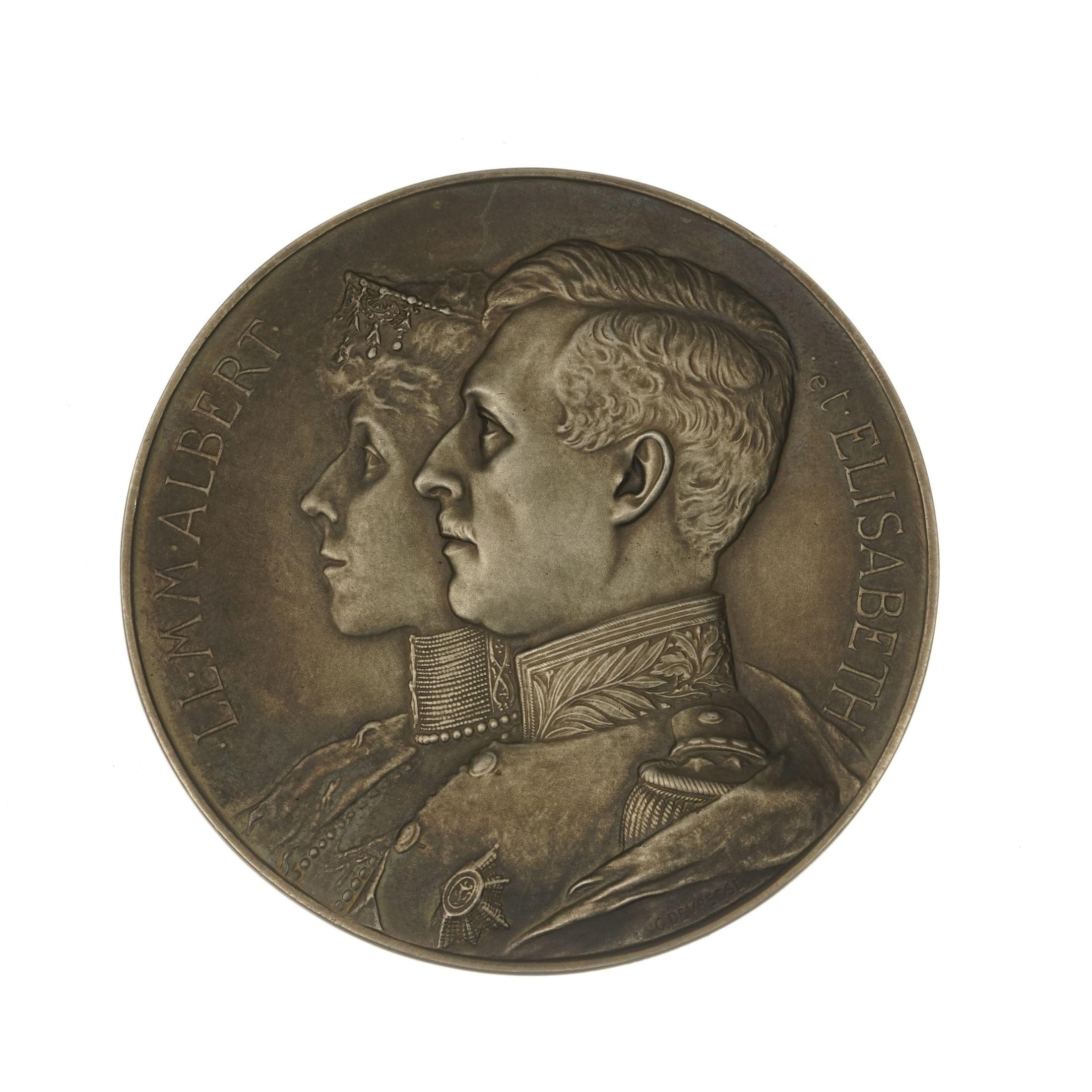 116. LL. MM. Albert et Elisabeth, grande médaille probablement en argent signée G. Devreese, Fonson & Cie