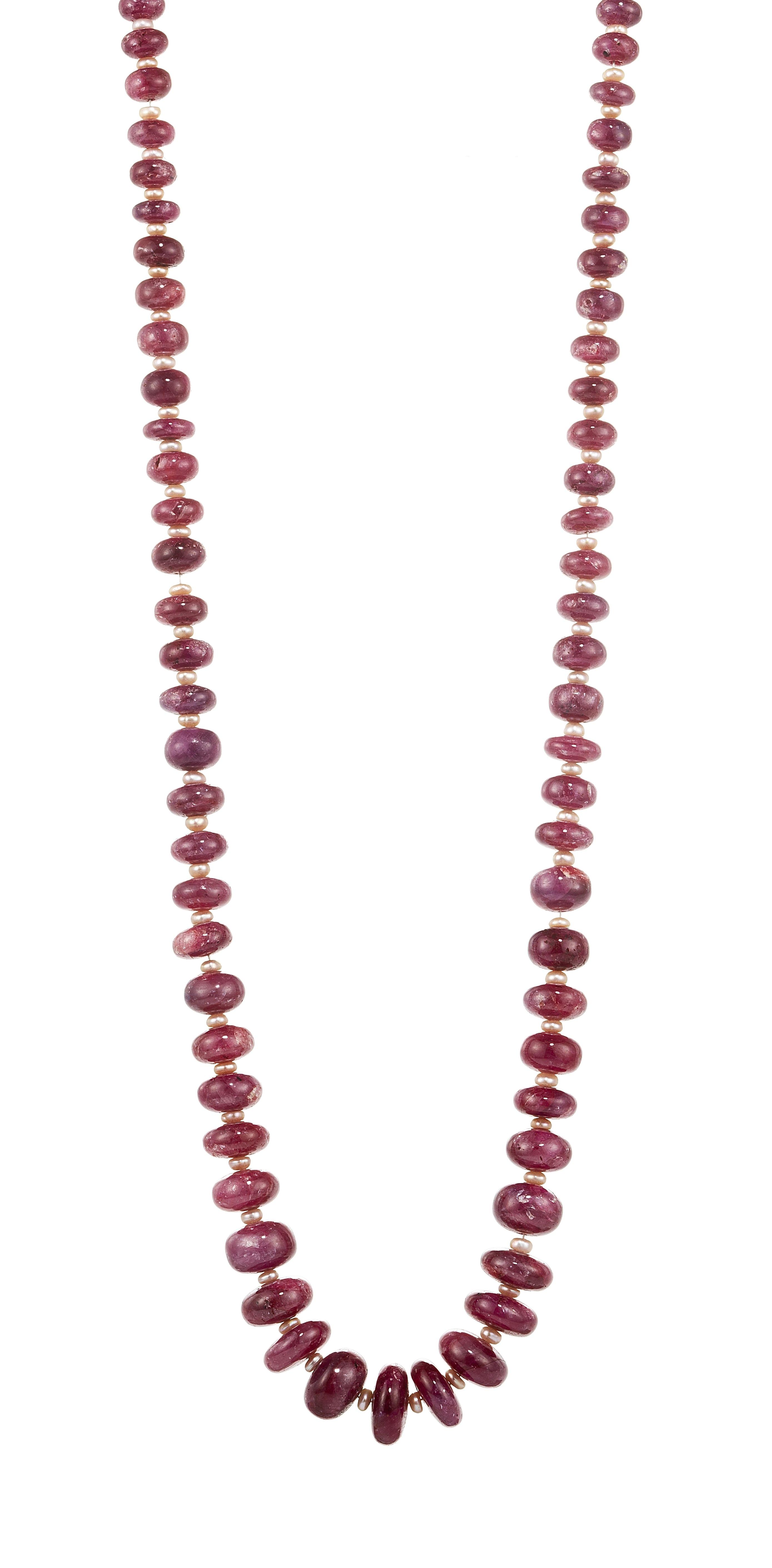 56. Collier retenant un rubis taille cabochon poire (env. 17x13x7 mm...