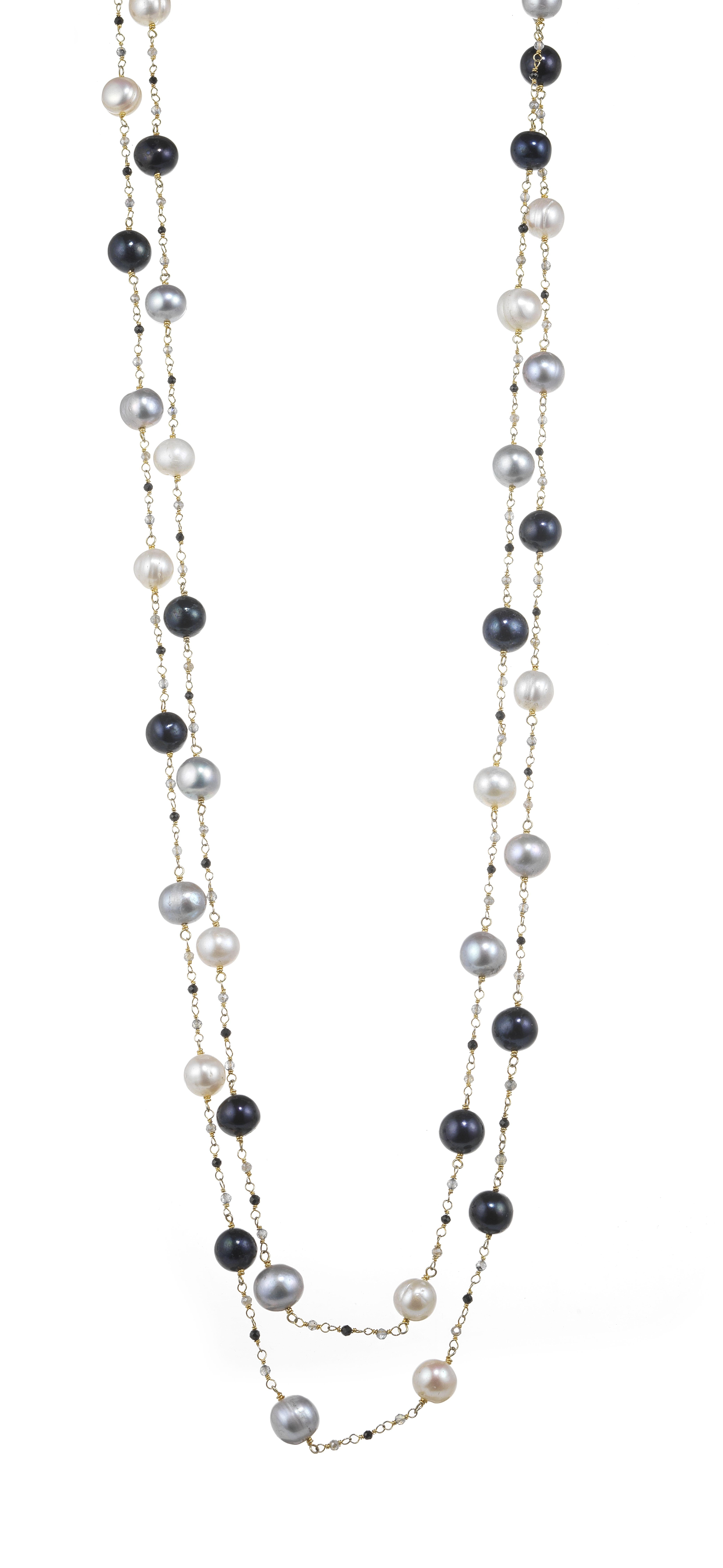 Ponctué de perles d'eau douce blanches, grises et noires, alternées de petites perles facettées de labradorite et de spinelle noir, argent 925, L env. 240 cm. Pour les lots précédés d'un *, la TVA de 7,7% est due sur l'entier du prix d'adjudication.