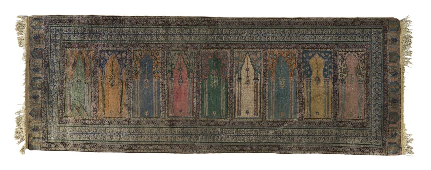 A motifs de médaillons dans les tons de vert, bordure à décor de...