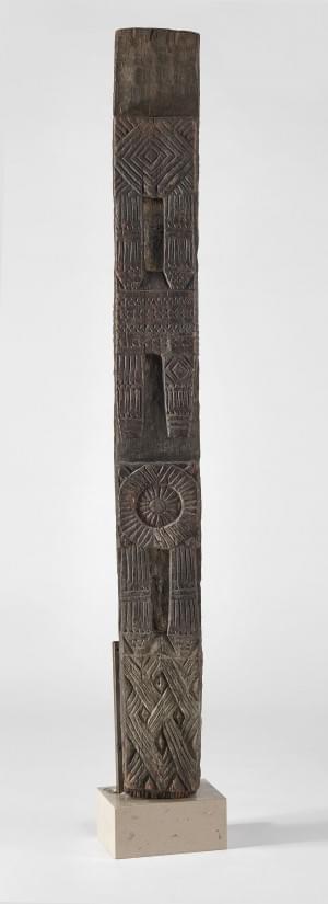 Bois sculpté, monté sur socle, H 206 cm