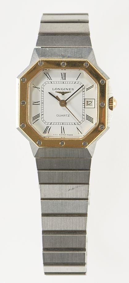 919. Longines, montre bracelet mécanique rectangulaire sertie de diam...
