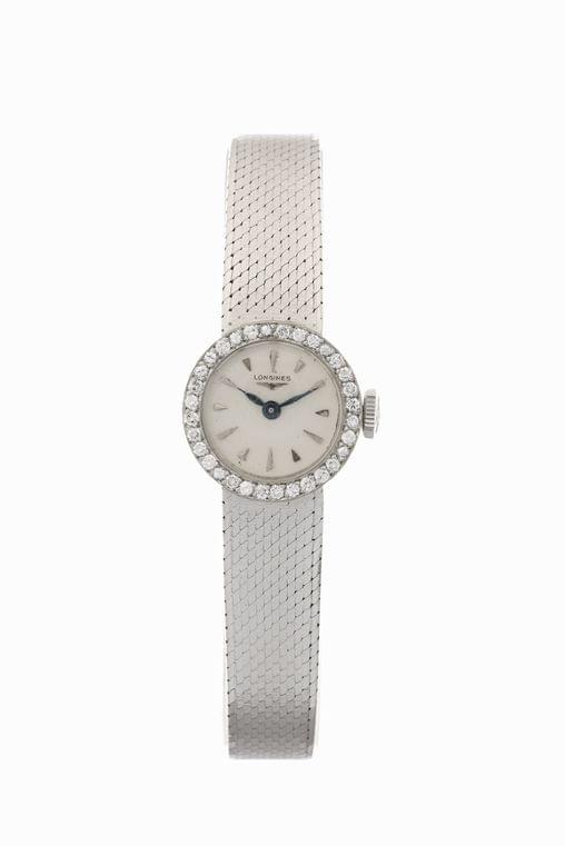 37. Longines, montre bracelet ronde mécanique sertie de diamants