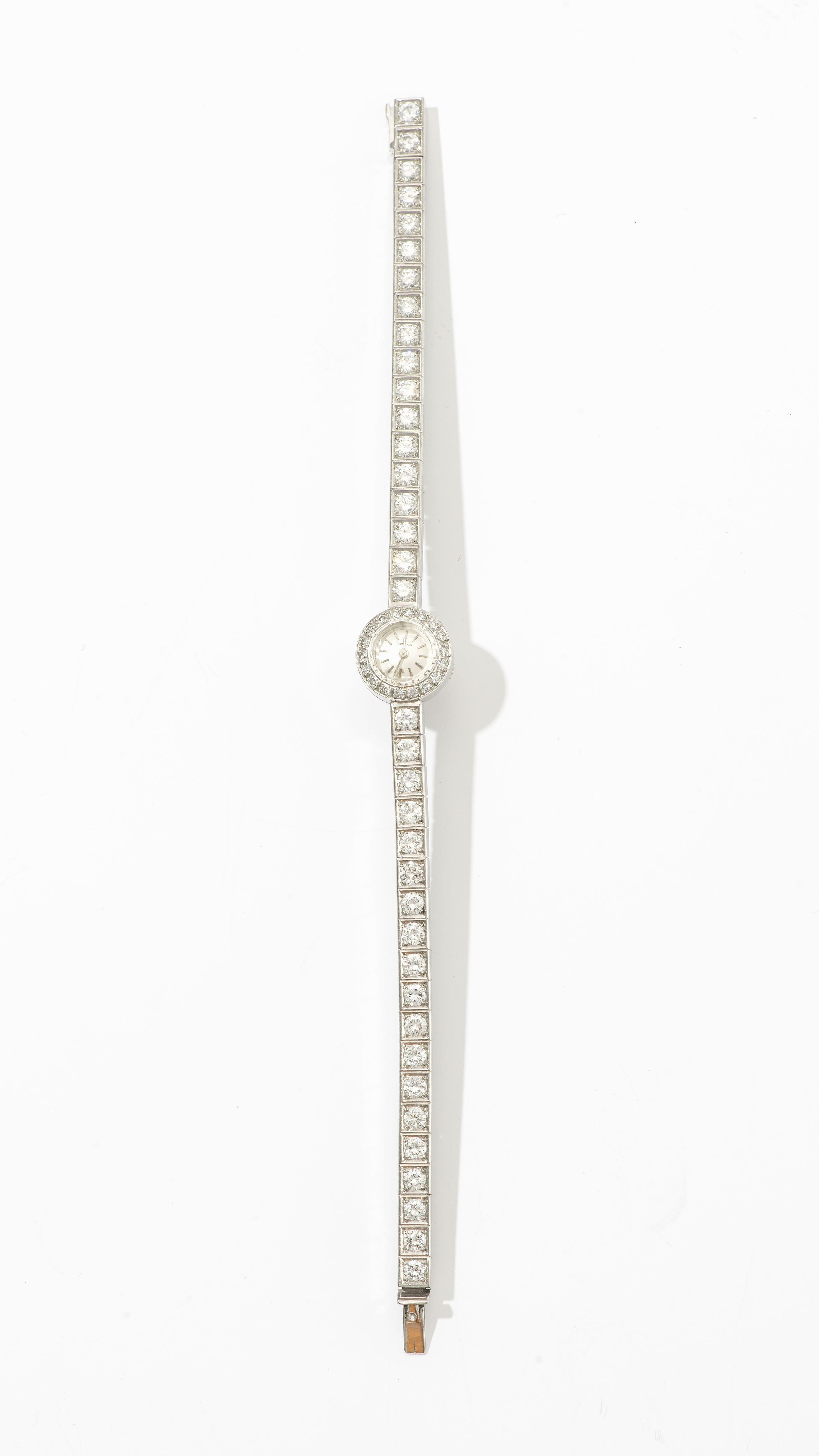 60. Longines, montre-bracelet ronde mécanique sertie de diamants taille brillant