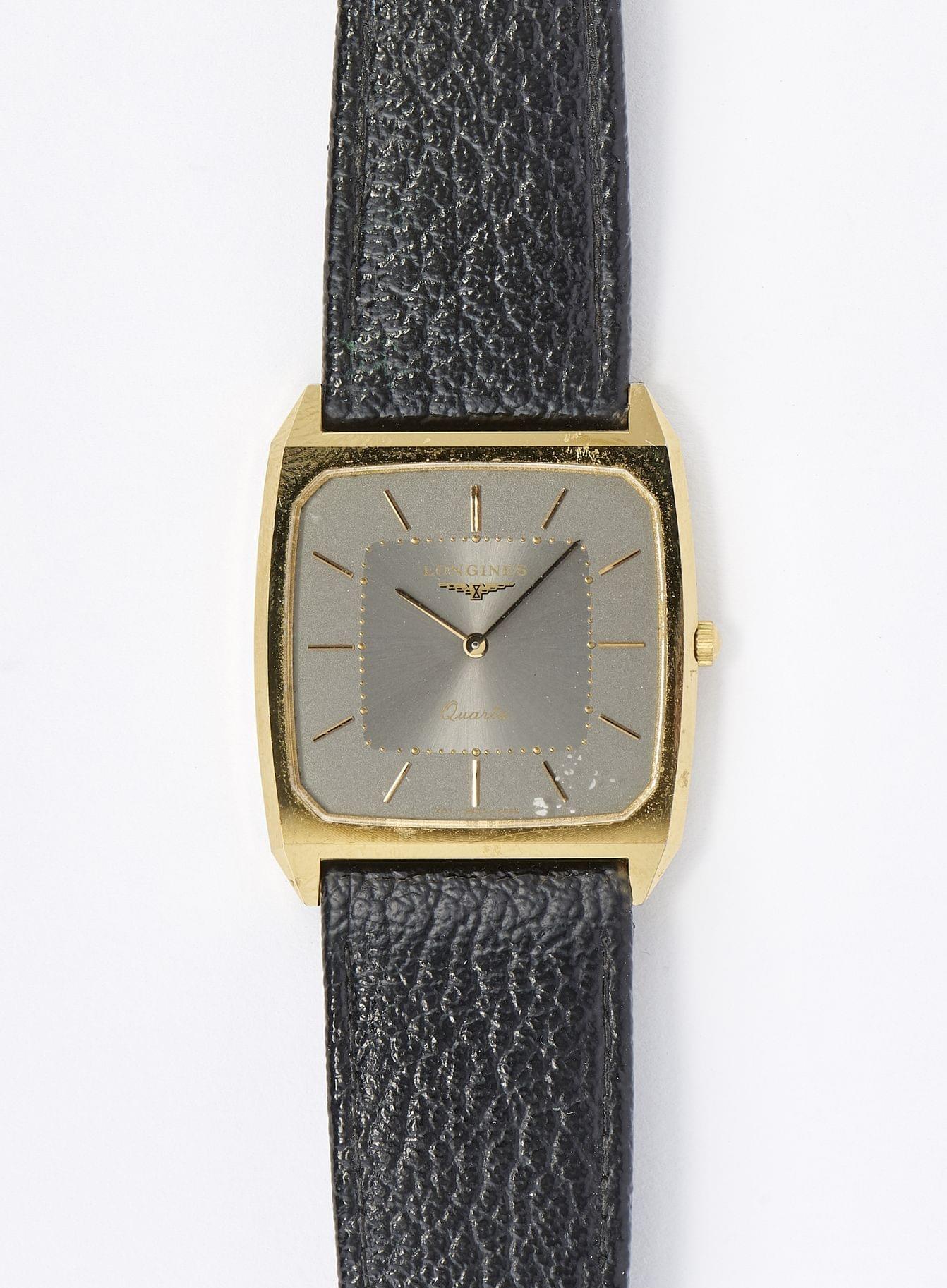 Cadran gris, aiguilles et index bâtons noirs, or gris 750, 26x21...