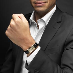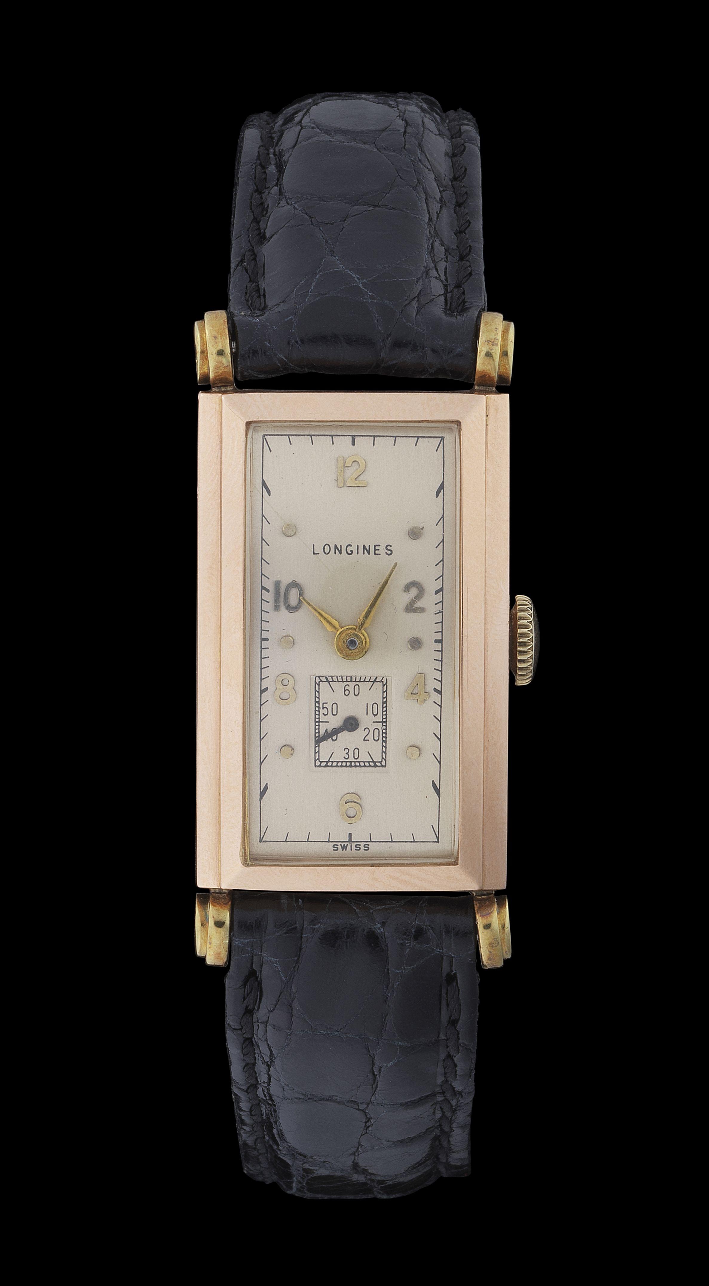 Cadran argenté, aiguilles et chiffres romains dorés, secondes à 6h, or rose 585, 31x19 mm, poids brut 27 g