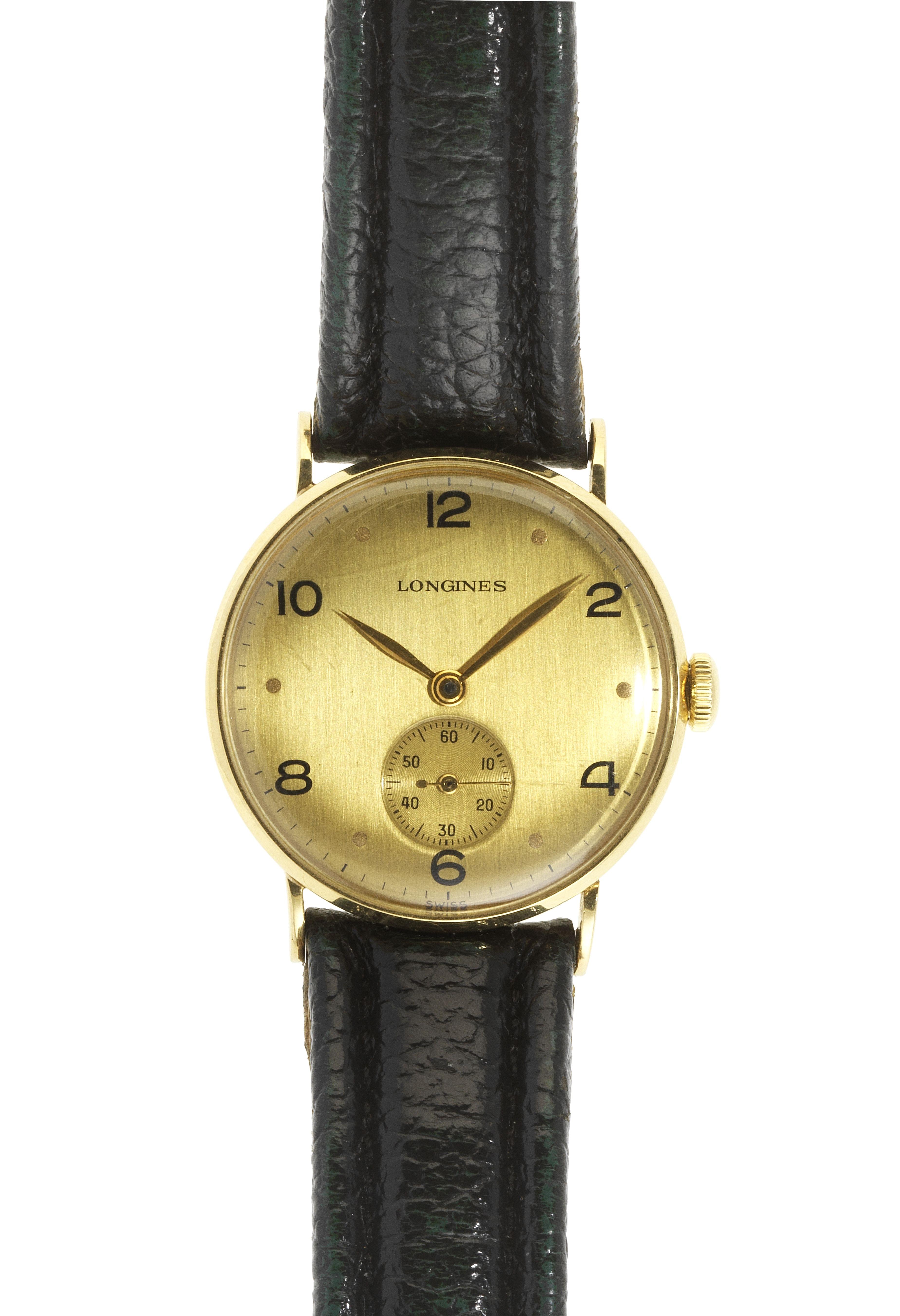 Cadran et aiguilles dorés, chiffres arabes noirs, secondes à 6h, or 750, D 31 mm, poids brut 34 g