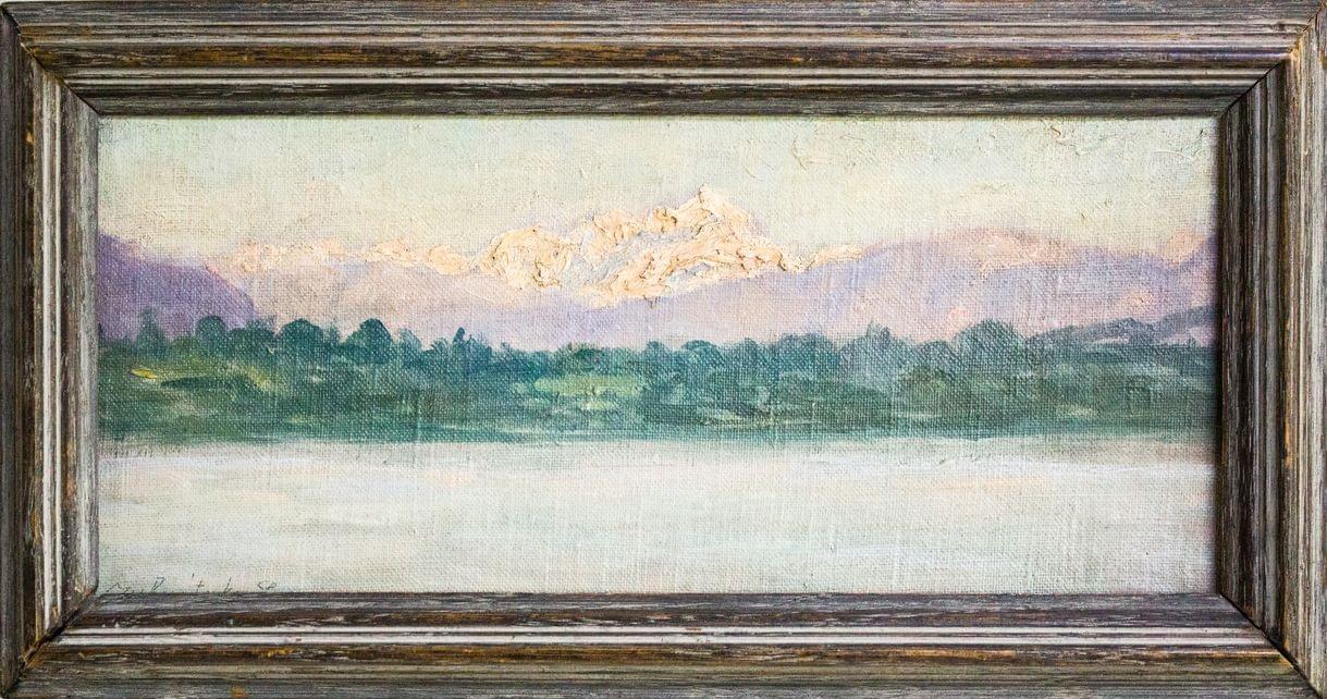 Le Mont-Blanc depuis le Léman, huile sur toile signée et datée 1930,